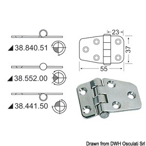 Hinge w/central pin 55x37 mm